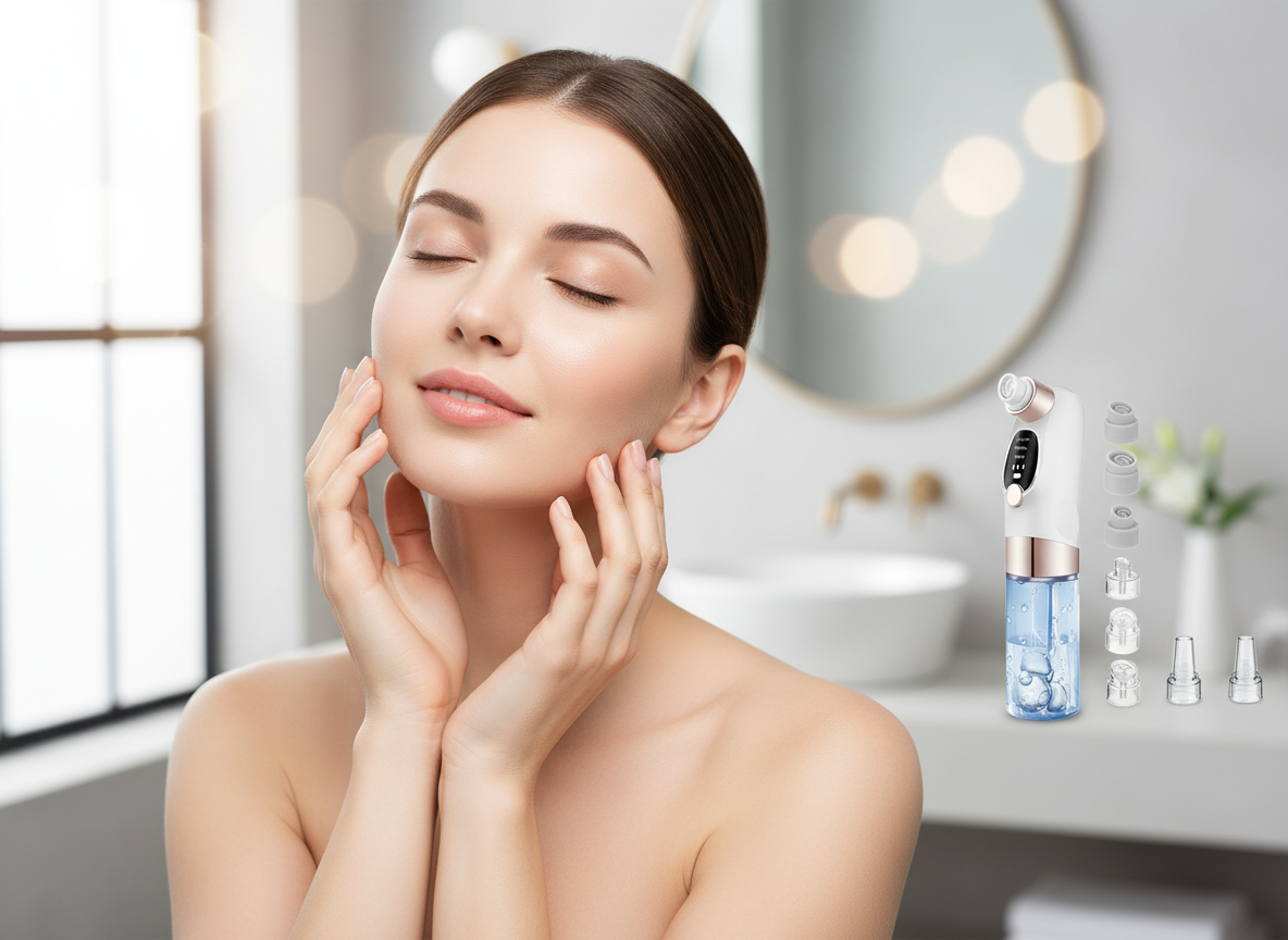 Each probe is designed for specific skin concerns: Large circular probe for blackhead extraction, small circular probe for precise areas, oval probe for sensitive zones, microcrystalline probe for dead skin removal, silicone probe for gentle massage, and elliptical probe for fine lines and wrinkles.